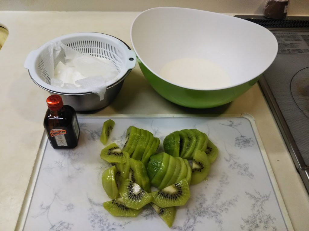 5. メレンゲが覚めたらキウイを半月型に切る。