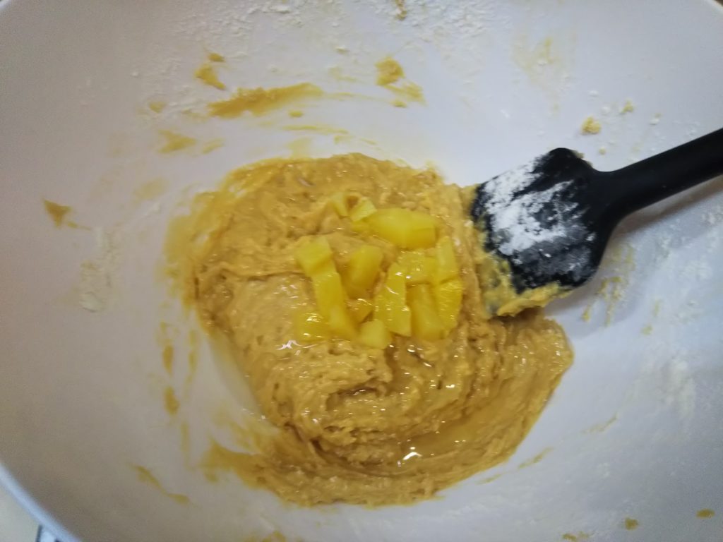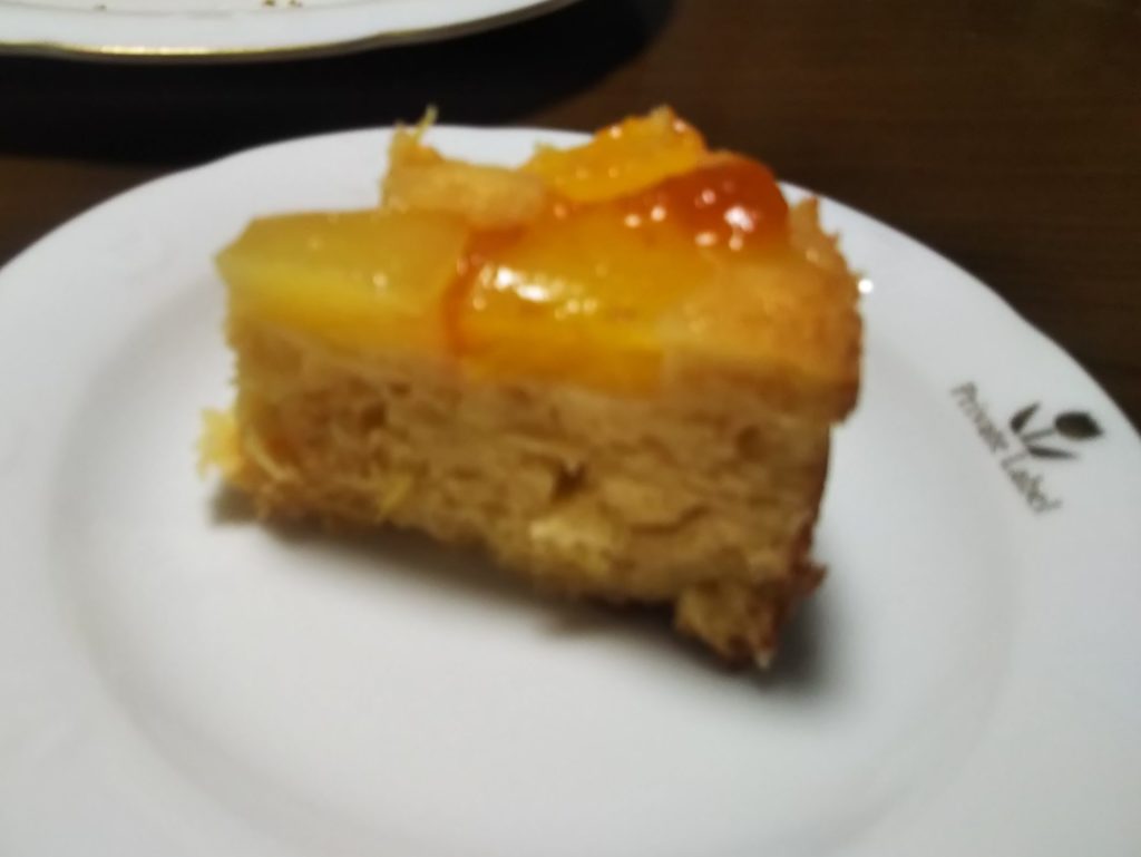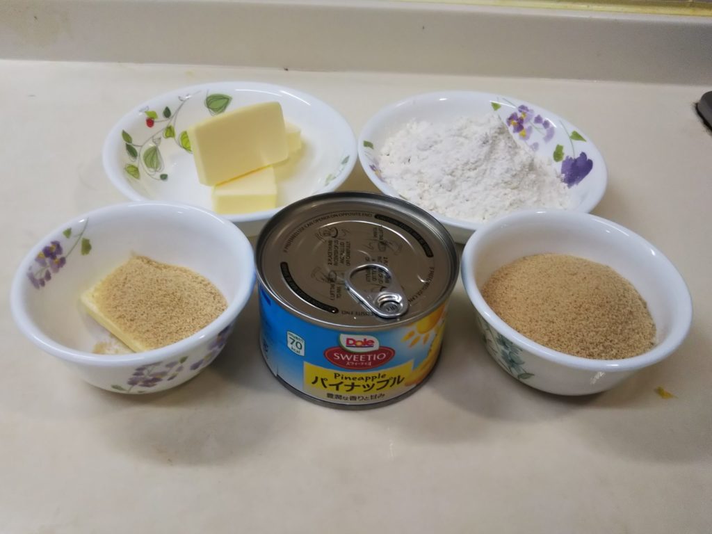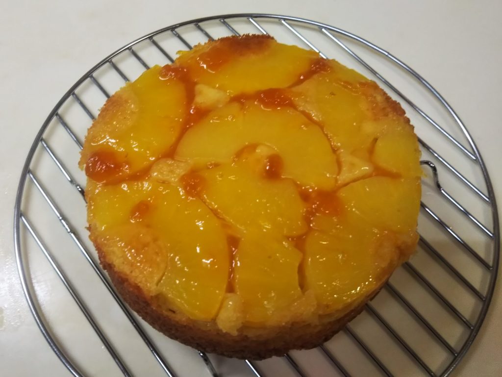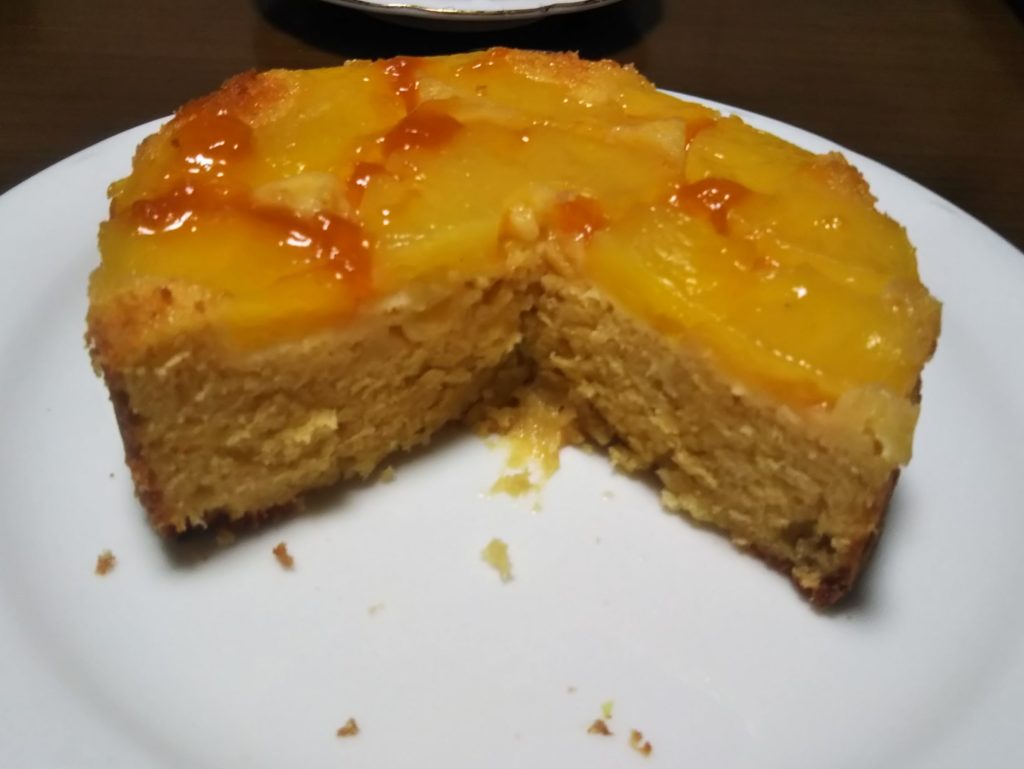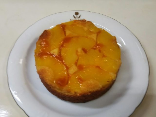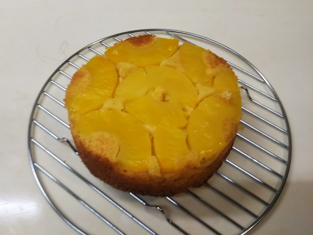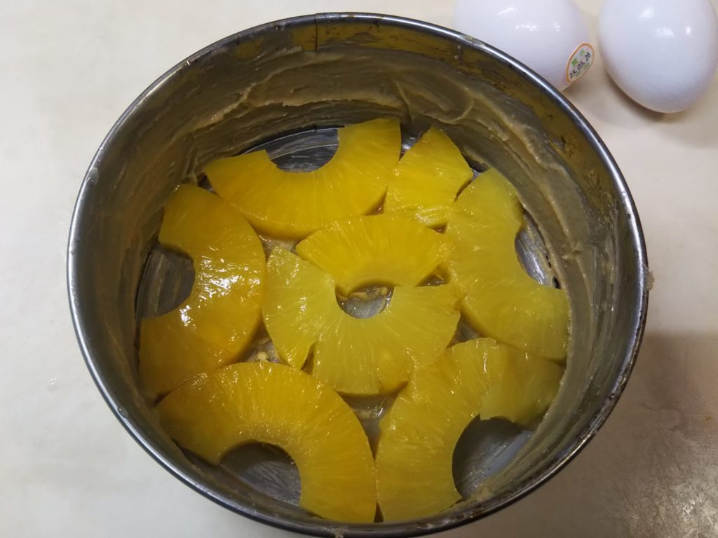 パイナップルのアップサイドダウンが生まれたのは、アメリカがまだイギリスの植民地だった頃。当時パイナップルは西インド諸島からの輸入品で高価だったため日常的に食べることもままならない状態でした。そんな中でパイナップルを使ったケーキはある意味贅沢な代物だったようです。ステラおばさんのレシピなどでは、ケーキ型の底にカラメルを敷きつめるのが王道のようですが、私はカラメルなしで作りました。