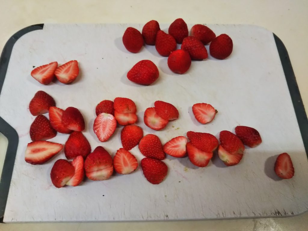 - 飾り用のイチゴ6個~8個を残してスライスしておく