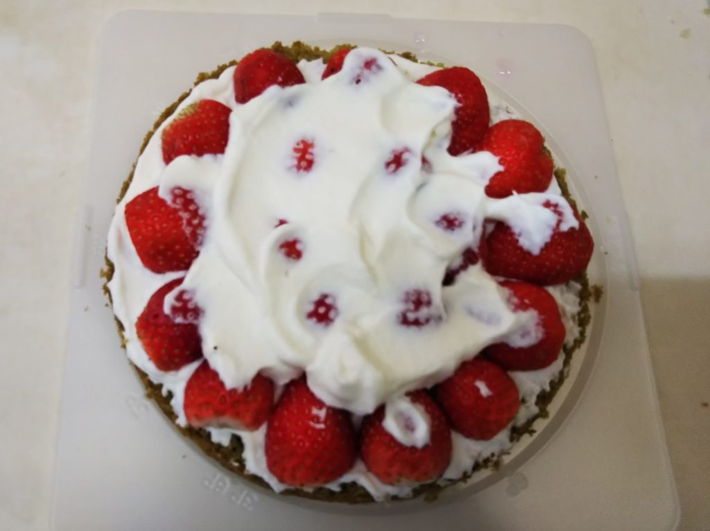 7. 上にホイップクリームをイチゴの隙間を埋めるように重ねる