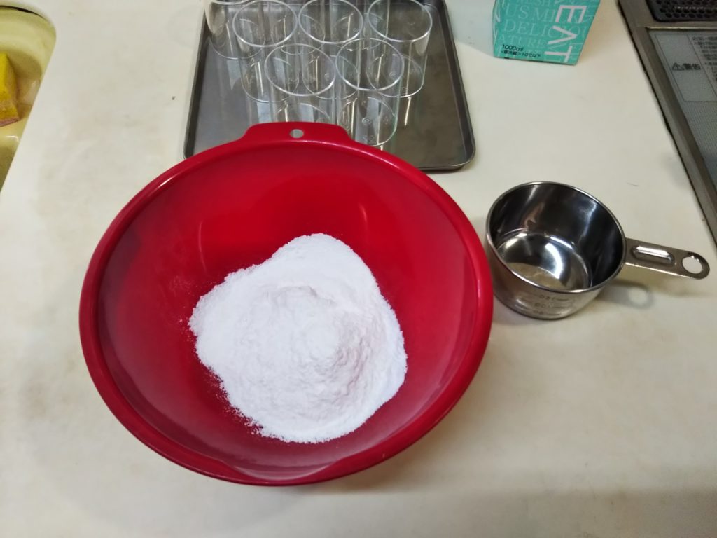 100㎖の使い捨てデザートカップ8個とゼリー型9個分