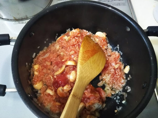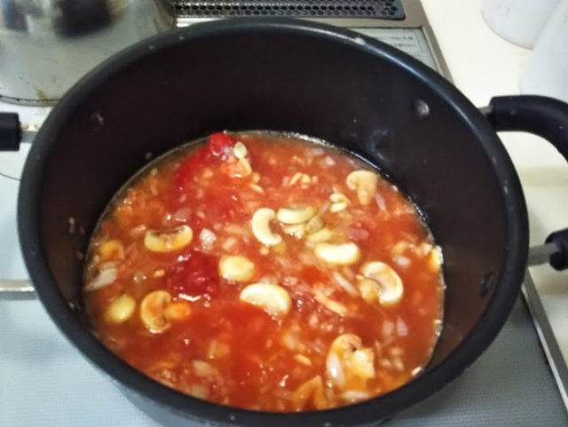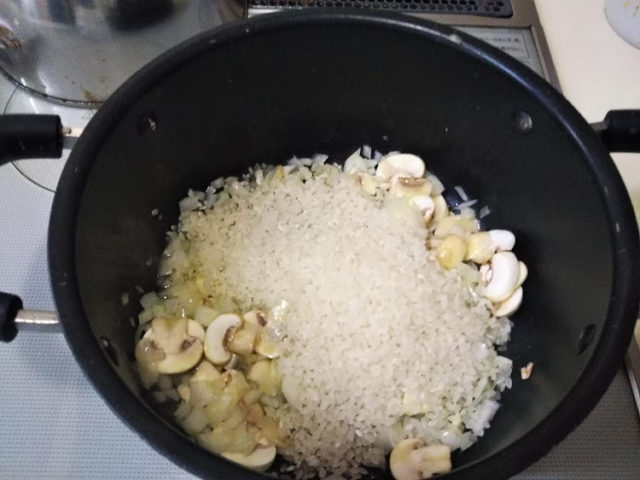 またしても丹田いづみさんの『家庭で作れるポルトガル料理』を参考にしましたが、本に書かれていたのは炊いてあるごはんを使っていました。でも、お米から作るやり方を覚えてしまったので、せっかくだから?お米で作るアロース・デ・トマーテ(トマトのリゾット)に鱈とマッシュルームを入れて作ってみました。