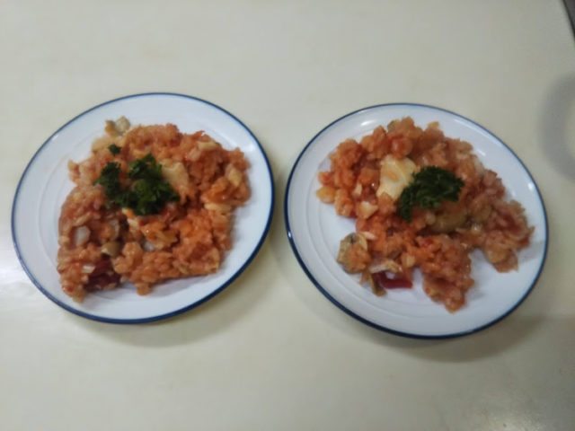 ポルトガル風リゾットはアローシュと書かれているものとアロースと書かれているものがあります。同じ本や同じサイト内でも表記にブレがあるので、何かが違うんだと思います。例えば後ろにくる名詞が男性名詞か女性名詞化によって違うとか?よくわからないので、元のサイトに罹れている通りに表記しています。