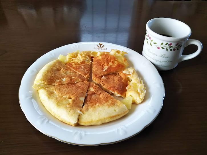 今回も2枚分を一度に焼きました。パイナップルの水分があったので少し湿っぽくなってしまいました。でも食べられないというわけではありません。多分ホットケーキミックスがいいのでしょうね、小麦粉で作ったらネッチョリしてしまったかもしれません。
