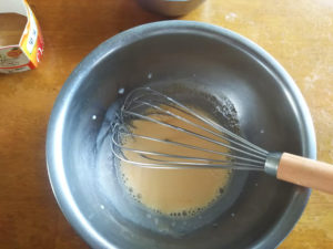 3.牛乳を少しずつ加えて混ぜ込んでいく。