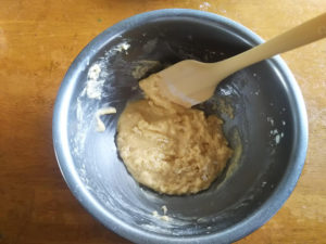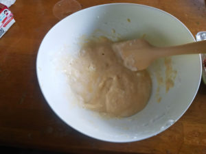 5.生地とメレンゲを泡をつぶさないように合わせる。