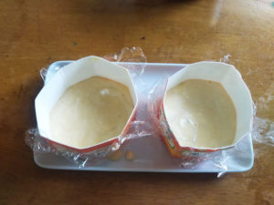 作り方は、卵白を泡立て、卵黄とその他の材料を全て混ぜて合わせて、卵黄と卵白を合体。あとは同じ要領です。