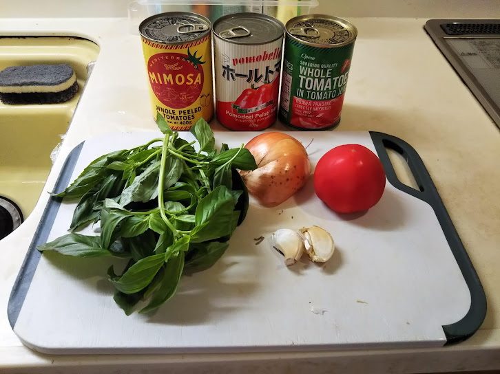 フランスの料理本を読んでいたら、Sauce Napolitaine つまりナポリタンソースというのを発見しました。レシピを見てみると、日本ではおそらくバジルトマトソースとでも言うような代物でした。ナポリタンは日本人が考えた和製イタリアンですが、フランスにも仏製イタリアンがあるのでしょうか?よくわからないけど、面白そうなので作ってみました。