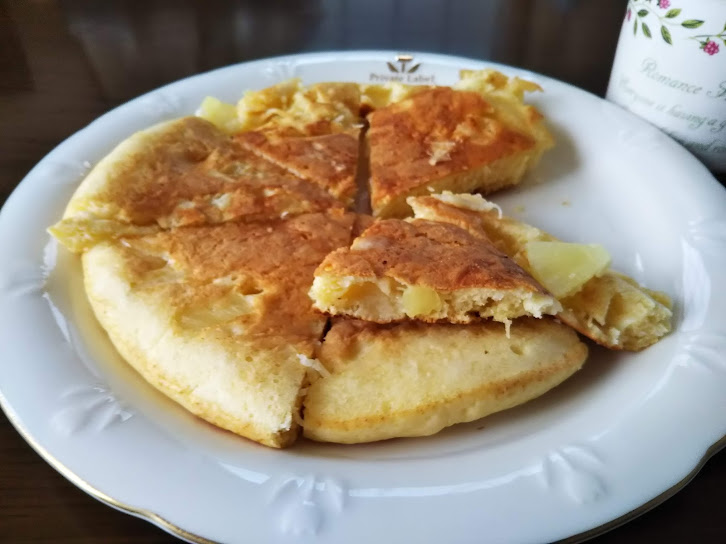 ハワイをイメージするココナッツとパイナップルが入ったパンケーキです。