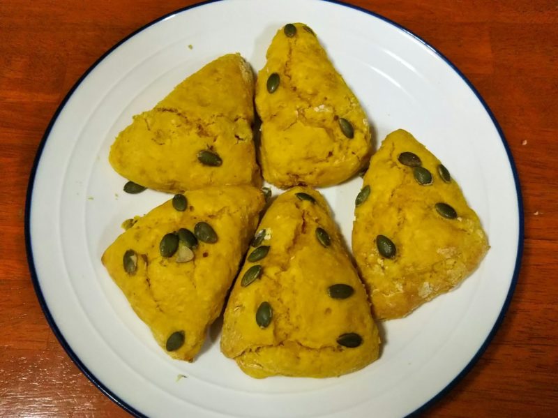 南瓜を加えたおかずスコーンです。印象と異なって甘さが控えめで食べやすいです。
