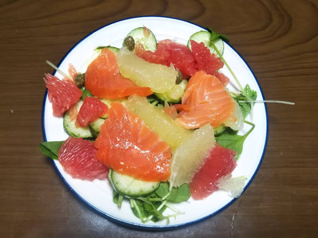 スモークサーモンとグレープフルーツのサラダ