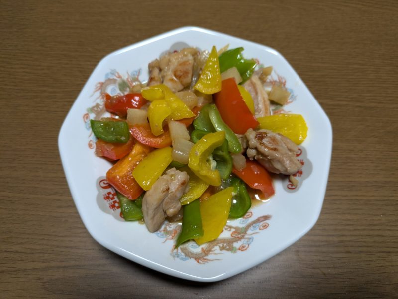 甜椒菜甫炒鶏粒(鶏肉の三色ピーマン炒め)