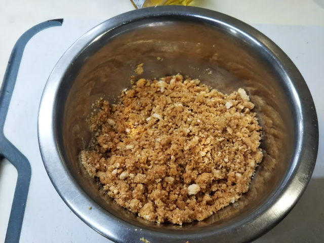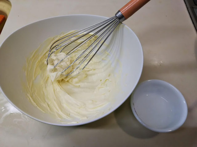 わたしはこれまでにもレアチーズケーキは何度も作ってきましたが、薄く切ったスポンジケーキの上にフィリングを載せるタイプで、クッキーを砕いて土台を作るやり方は、お菓子作り歴30年であるにもかかわらず初めての試みでした。なので、今回は成功とは言えませんが…これも成長の過程だと思ってここに記録します。