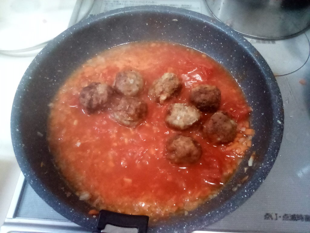 アルボンディガスはスペインのミートボールです。トマトソースで煮込むのが特徴のようです。レシピは丸山久美著『家庭で作れるスペイン料理』(河出書房新社)からアルボンディガス・肉団子の煮込みを参考にさせていただきました。