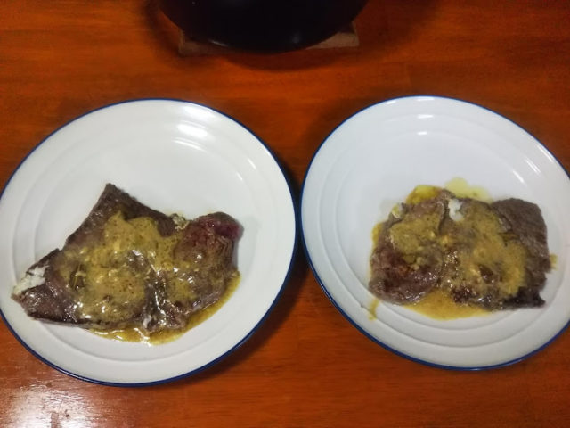 5. ステーキも目玉焼きも焼けたら別皿に取り除ける