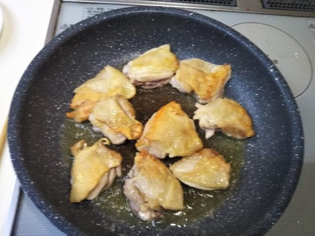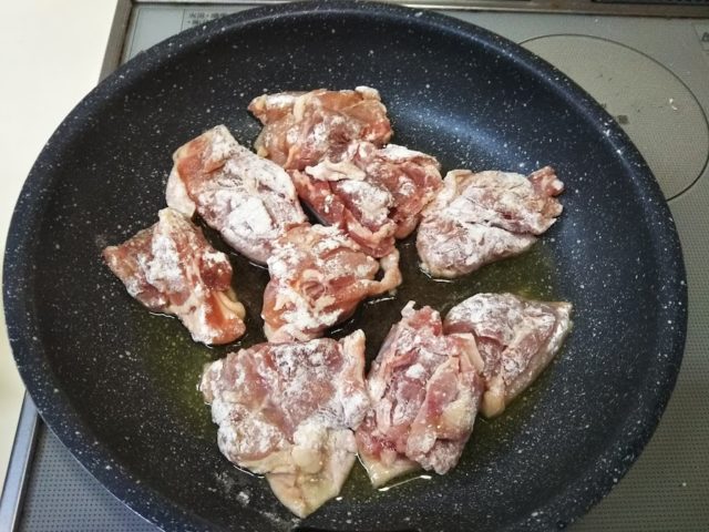 1. 鶏肉は大き目の一口大に切って塩、胡椒をまぶす