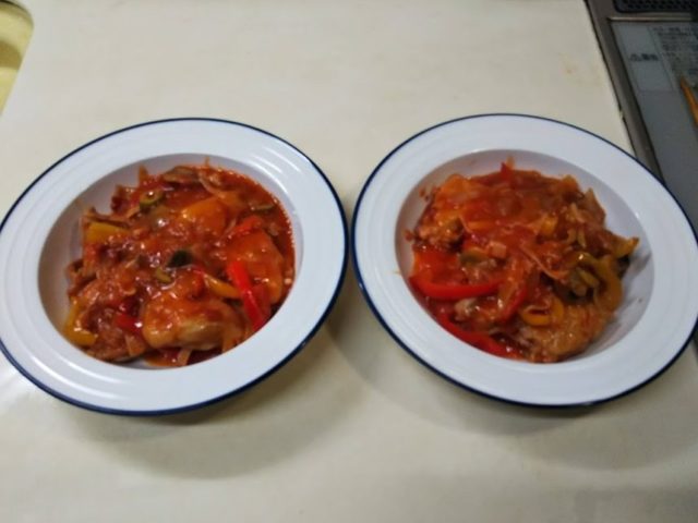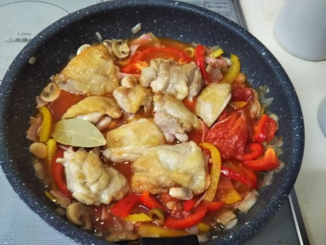 鶏肉をトマトで煮込む料理は世界中に沢山あります。こちらはスペインのチリンドロンソース煮、ごちゃまぜとかいう意味なんだそうです。