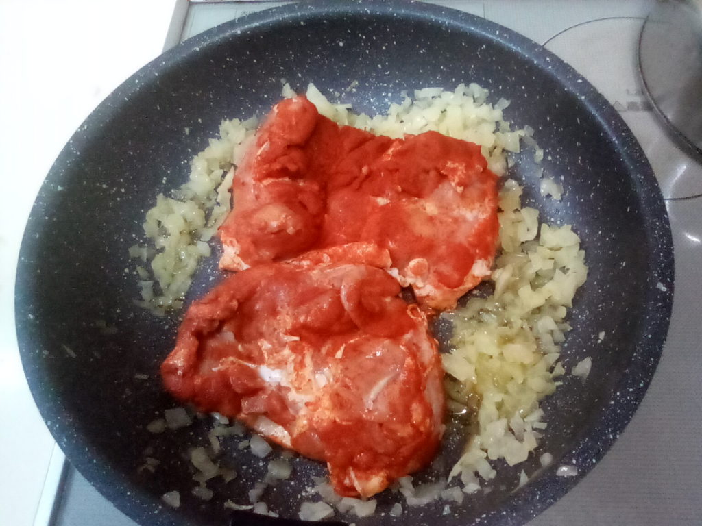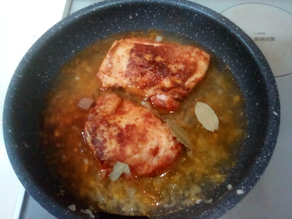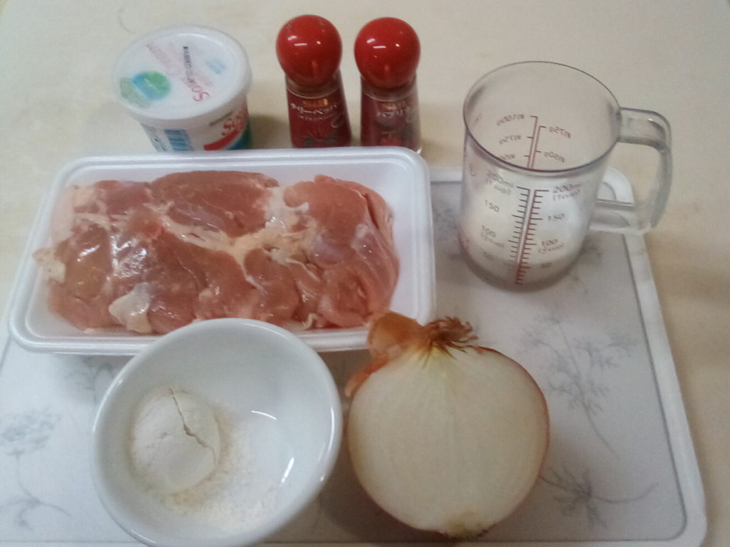 ハンガリーの代表的な料理、チルケパプリカーシュ(パプリカチキン)を作りました。パプリカ―シュはチキンだけでなく、羊肉や仔牛の肉などでも作られるようです。パプリカパウダーを加えたサワークリームのソースをかけていただきます。本来ハンガリーではパプリカパウダーがいろいろあって、この料理にはあまいパプリカと辛いパプリカを使うのだそうです。日本では甘いパプリカしか売られていないので、代わりにチリパウダーを使用しました。
