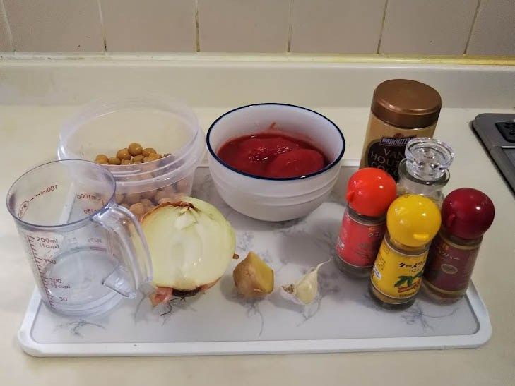ひよこ豆を使ったカレーは食べやすく、そして結構お腹がいっぱいになります。これはいろいろ試行錯誤してレシピを固めました。ポイントはココア。私は市販のカレールーの中にもちょこっとココアを入れたりしています。一味足りないな?という時にはお勧めです。