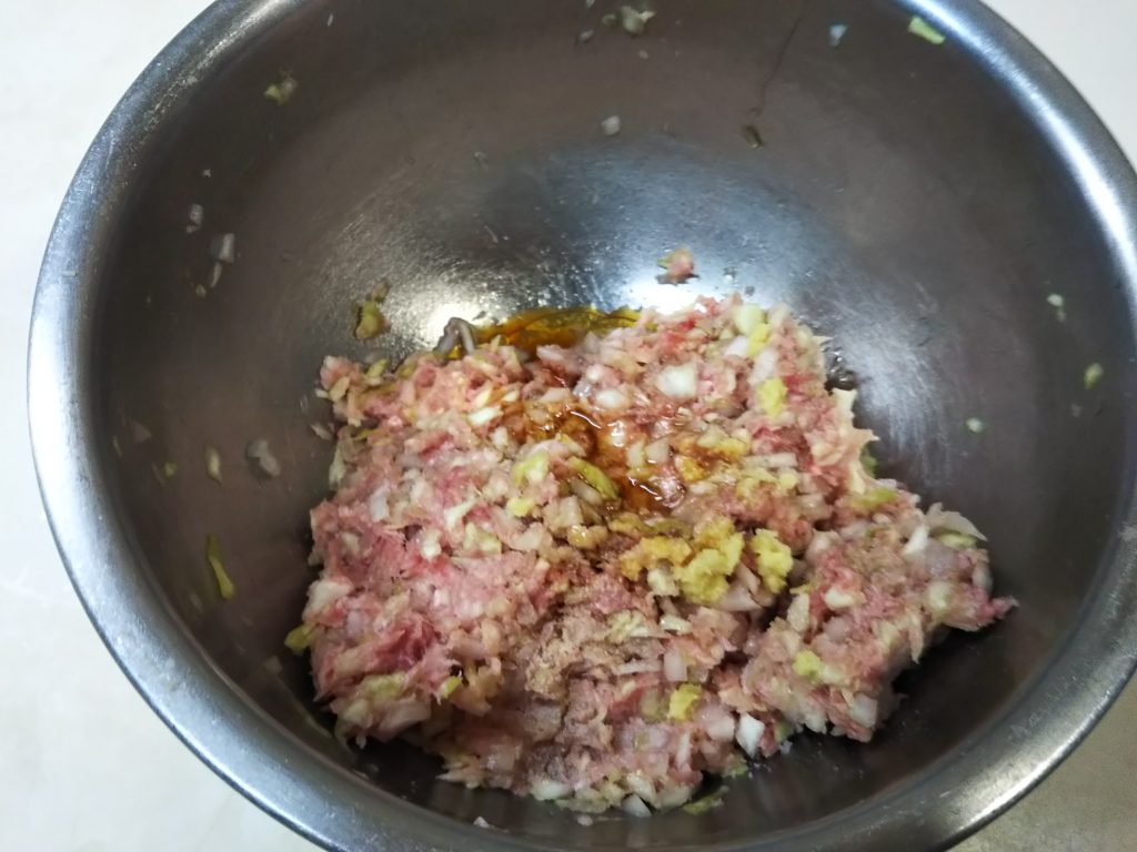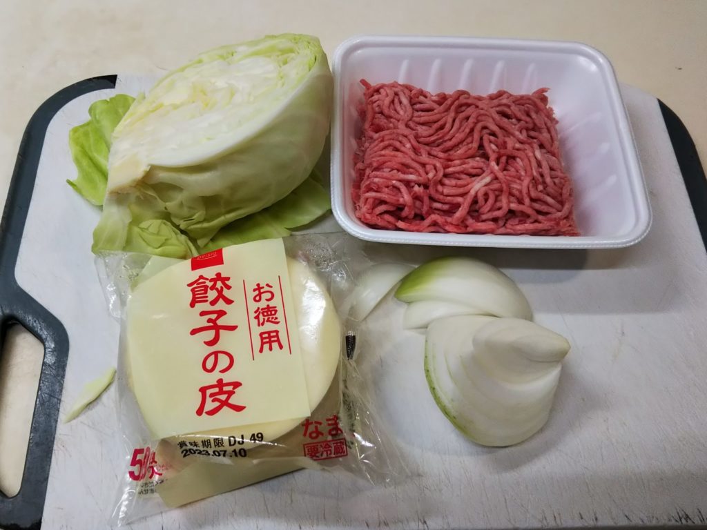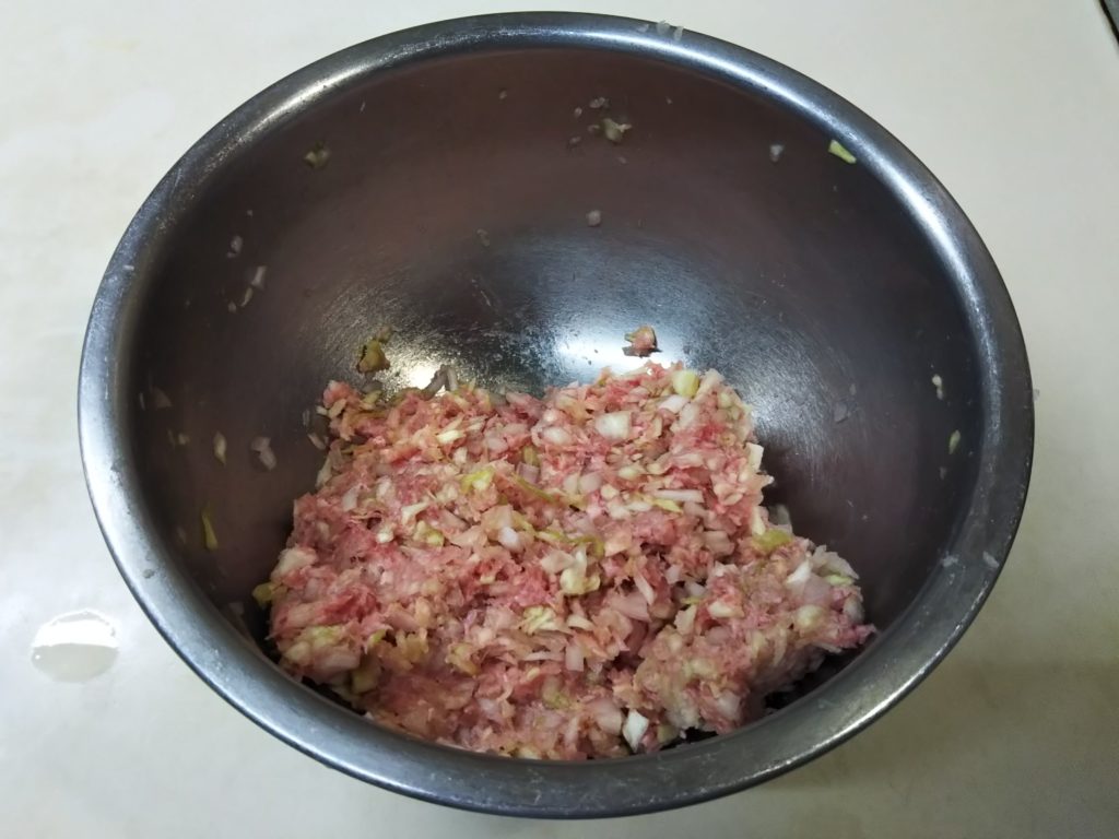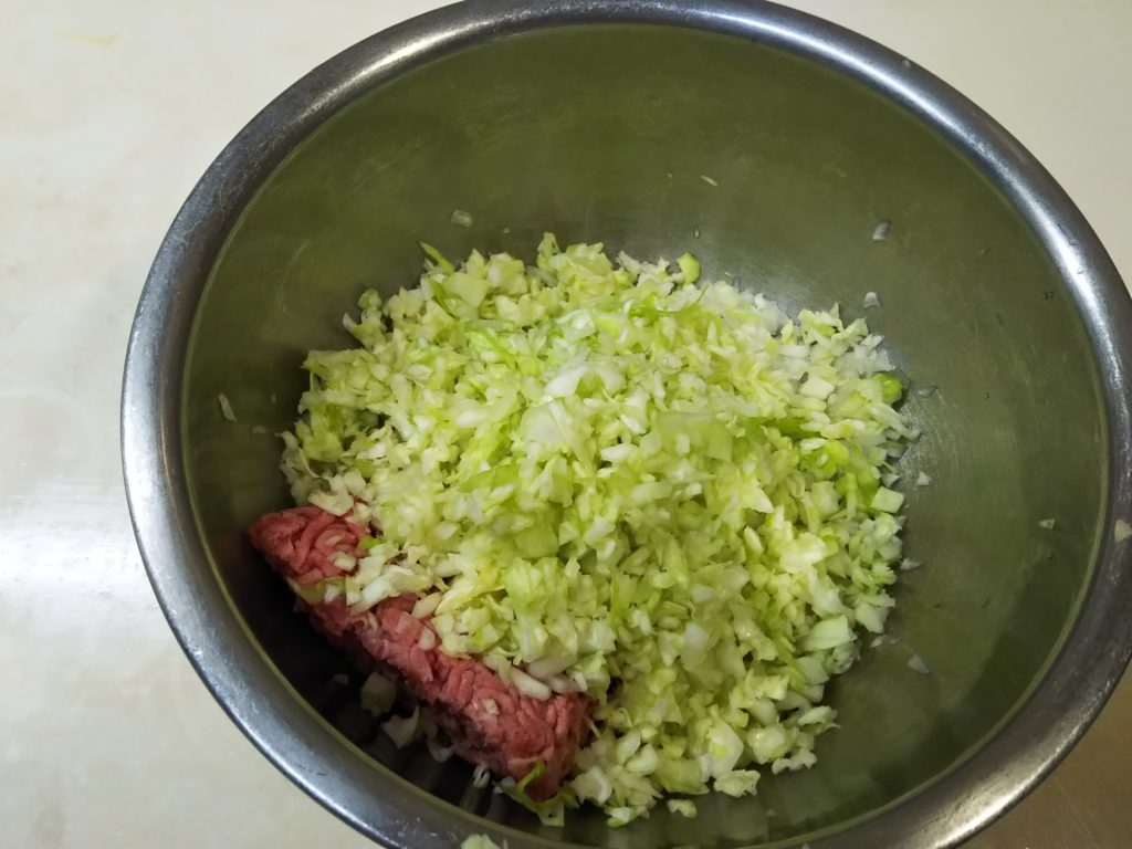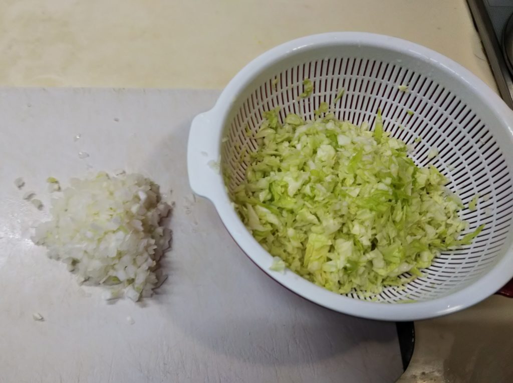 1. キャベツは微塵切りにして塩を振っておく。玉葱も微塵切り、生姜は摺りおろしておく