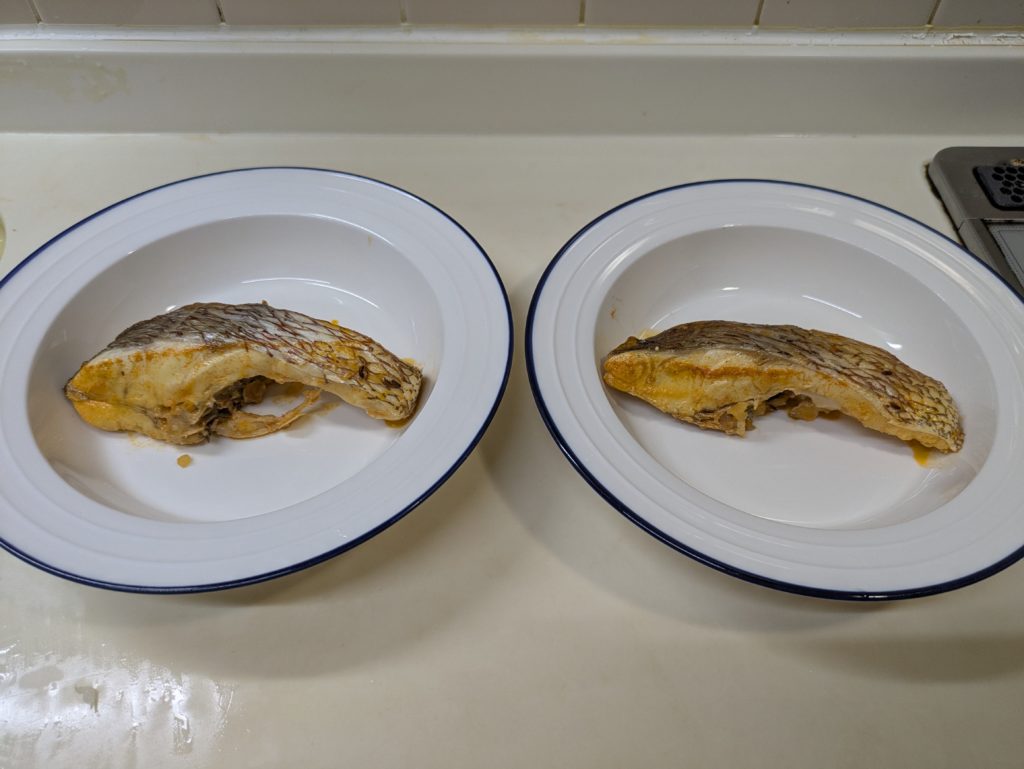 リモートシェフのフレンチのシェフが紹介していた真鯛の煮込みです。オングロワ(hongrois)とはハンガリー風という意味のようですが、オングロワーズ(hongroise)じゃないかな?と一瞬思ったものの…ま。いいか。ハンガリーっぽくパプリカパウダーがいっぱい入ったソースで煮込みます。レシピはオレンジ香る真鯛のオングロワを参照しました。