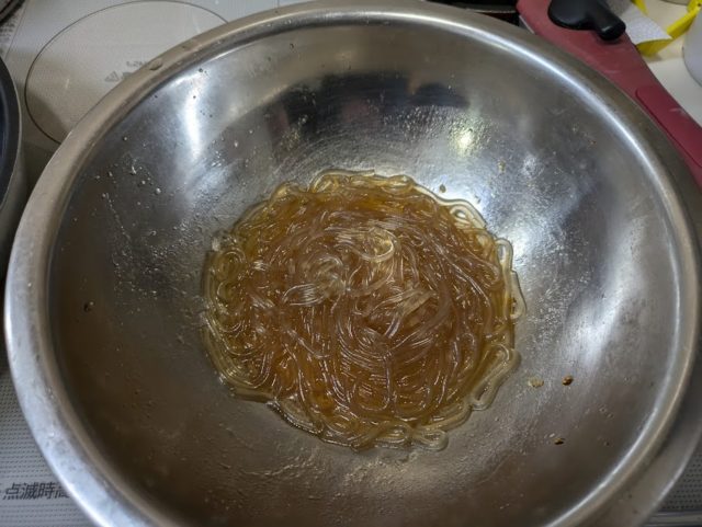 1. 鍋に湯を沸かし、春雨を袋の指示に従って茹でる