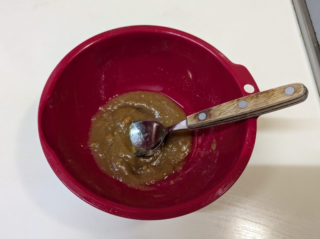 4. 調理している間にタレを作る。タレの材料をすべて小鉢または小さめのボウルに入れて混ぜ合わせる