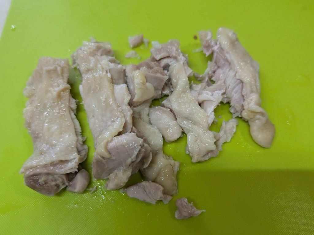 6. 鶏肉を食べやすい大きさに切り分ける
