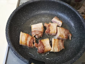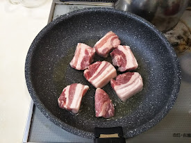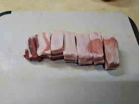1.豚バラ肉は1.5㎝から2㎝くらいに切る