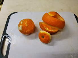 5.肉を煮ている間にオレンジの皮を渋皮も含めて厚めに剥く