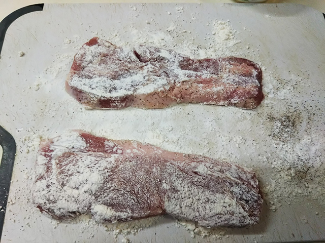 1. 豚肉は塩・胡椒を振りかけ、全体に小麦粉をまぶす