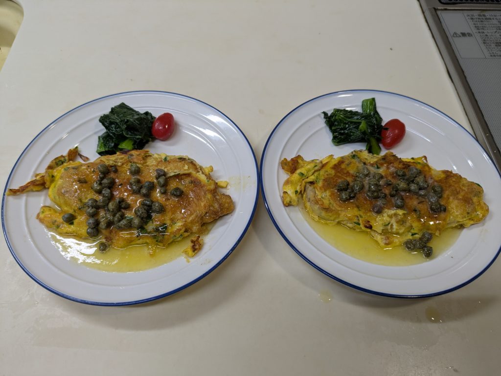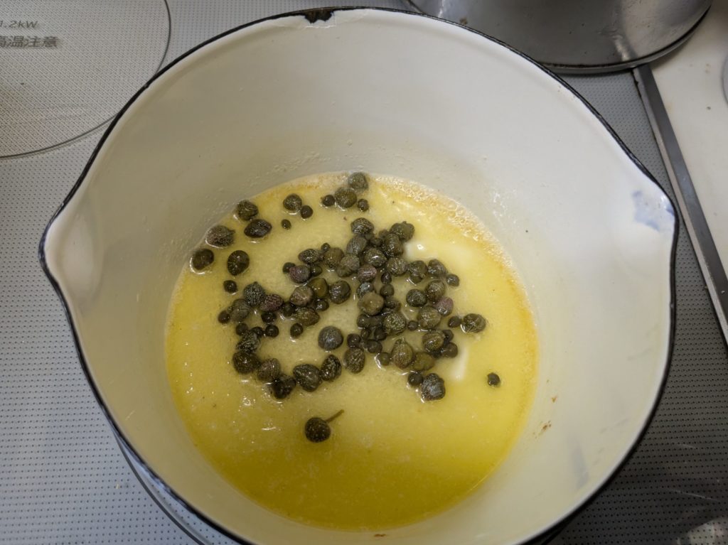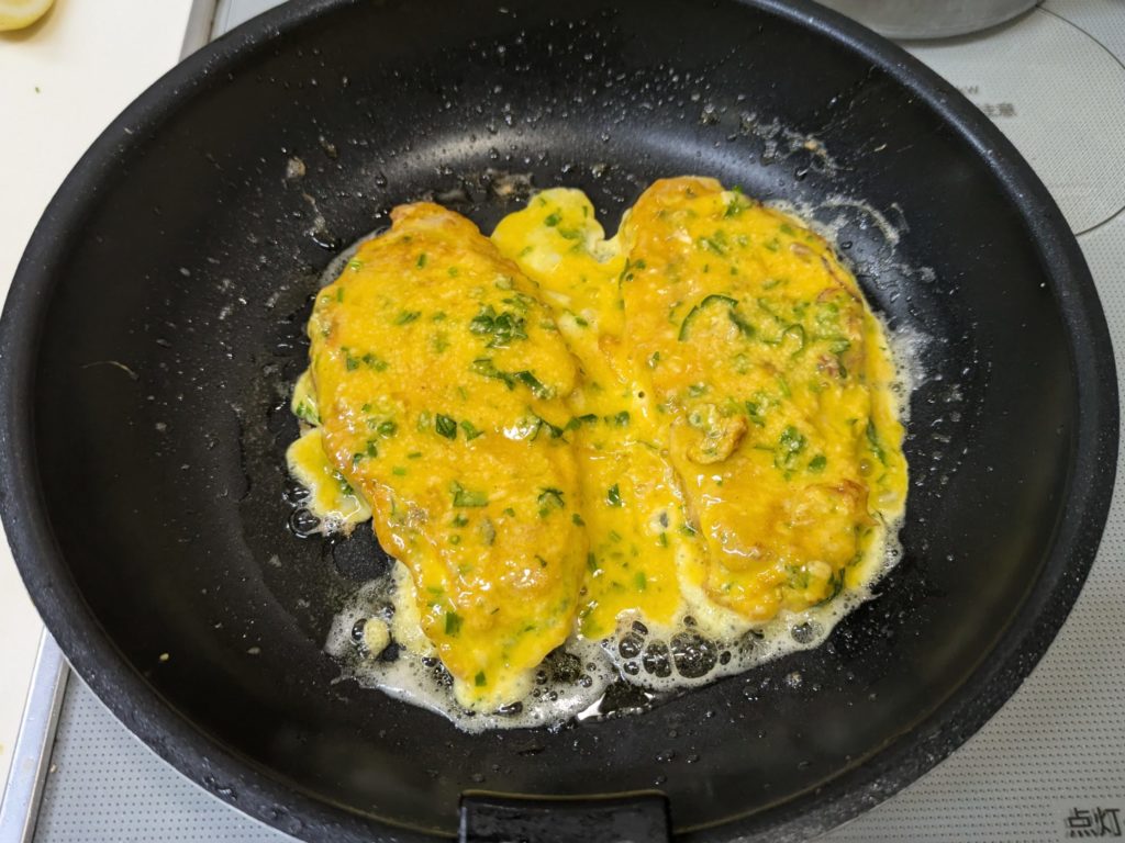 リモートシェフで紹介されたポークピカタです。このレシピはバッター液を二度付けすることで、卵の食感がふっくらしてオムレツを食べてるような満足感が得られます。またケッパーの入ったレモンバターソースをかけることでプチ贅沢感を味わえます。