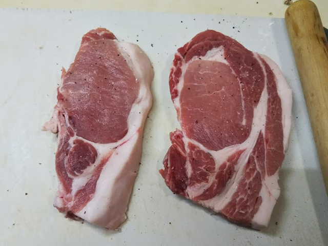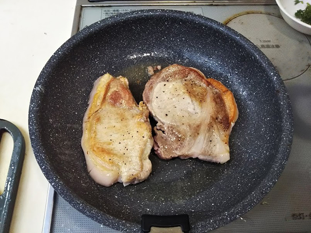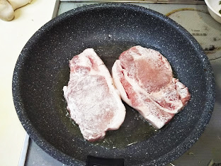 1. 豚ロース肉は筋切りしてすりこ木などで叩いて、両面に軽く塩胡椒を振っておく