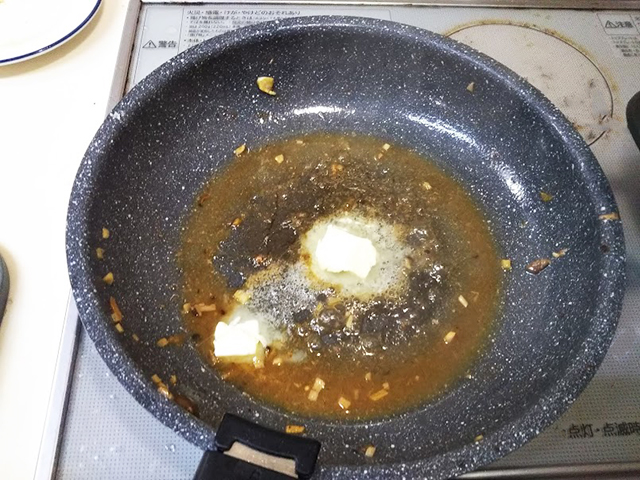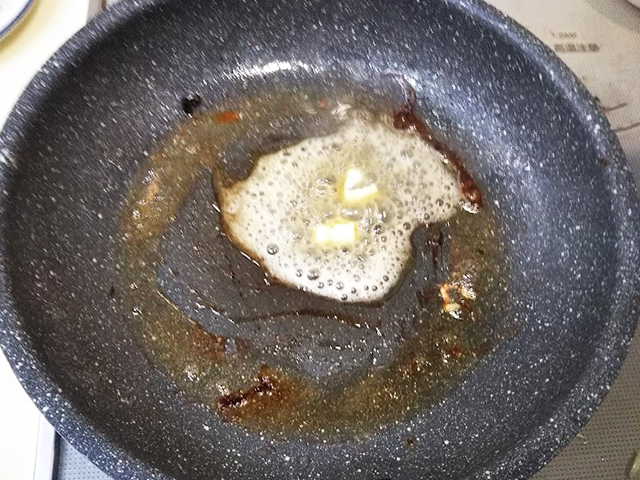 6. 豚肉に火が通ったら一旦皿に移す。同じフライパンにバター大匙1を入れて火にかける