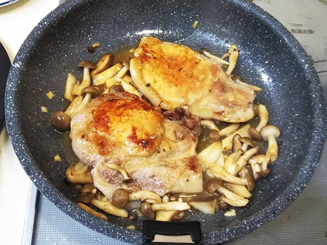 イタリアのキノコとレモンを使った肉料理で、豚肉の代わりに鶏肉や仔牛などでもいいそうです。