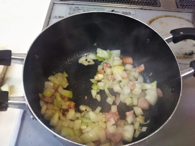 5. 玉葱を加え透き通るまで炒める