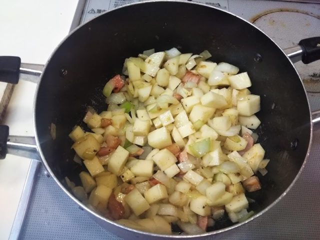6. じゃが芋を追加して、軽く炒める