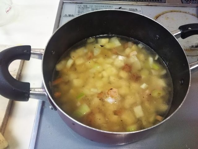 7. 水とブイヨンを加えて煮込む