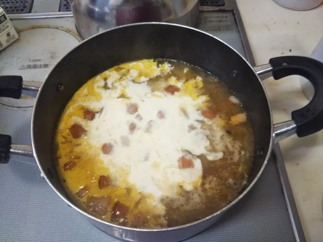 8. 野菜が煮えたら生クリームを加え、塩・胡椒で味を調える
