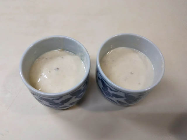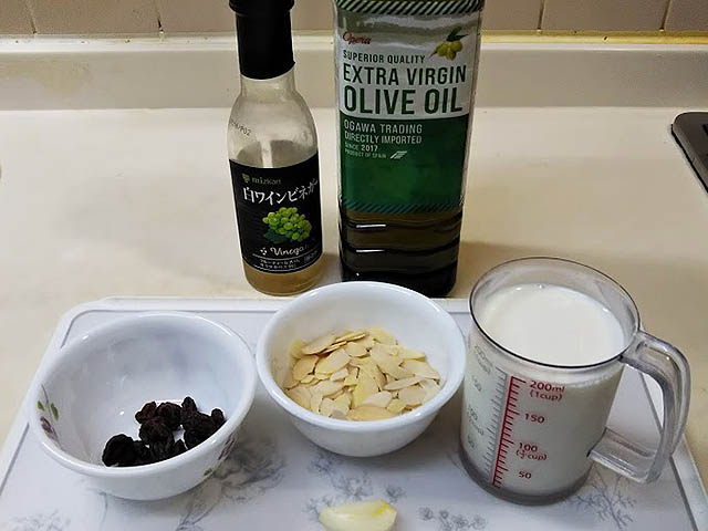 白いガスパチョ、アホ・ブランコです。アーモンドの香りをつけて牛乳にニンニクを加えた、何ともスペインらしい味わいです。