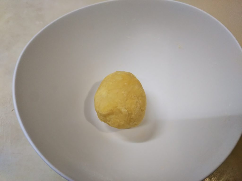2.滑らかになったら一まとめにしてラップをかけて常温で30分置く