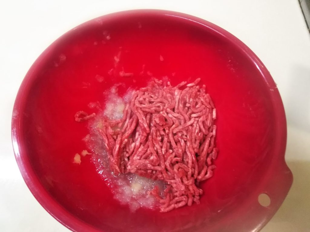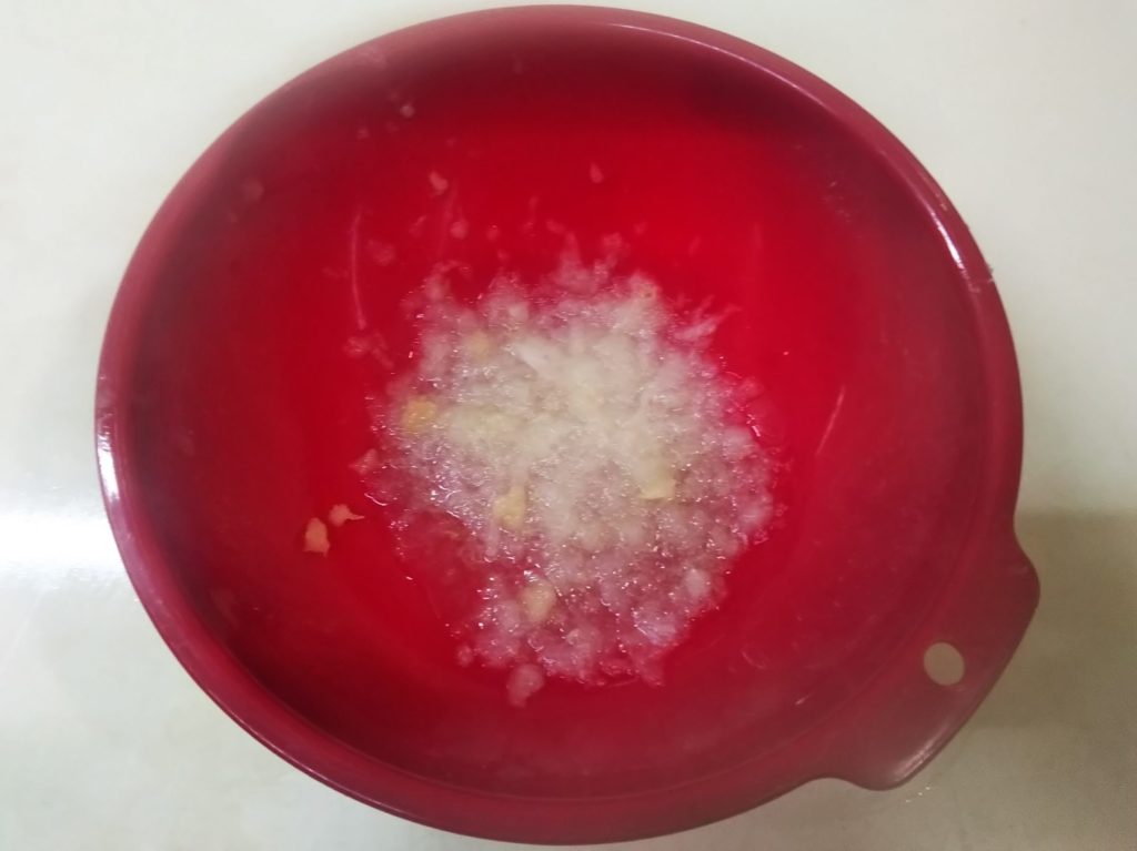 3. ボウルに玉葱とニンニクを摺りおろす