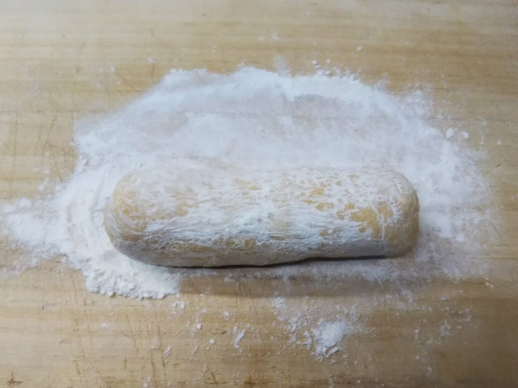 5. 俎板に打ち粉をして2.の生地を直径4㎝の棒状に成型する