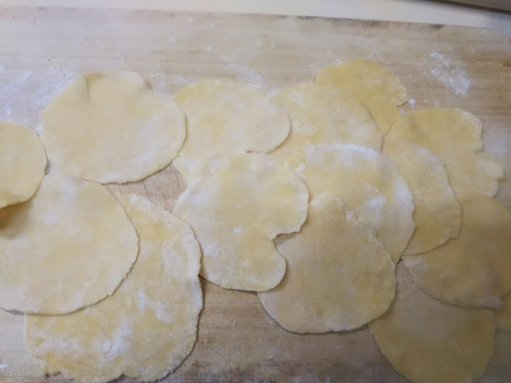 8. 丸めた生地を麺棒で直径6㎝位の円形に伸ばす