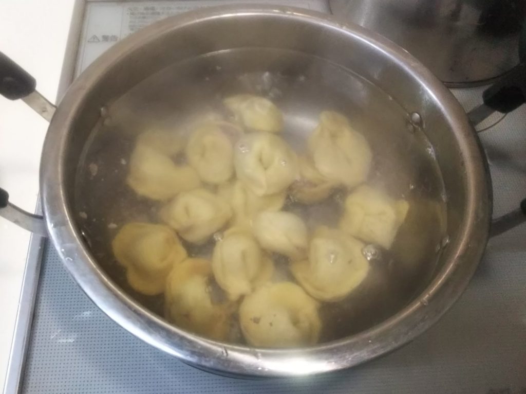 10. 鍋に湯を沸かし具を包んだペリメニを入れ、中火で浮かび上がってくるまで約5分茹でる