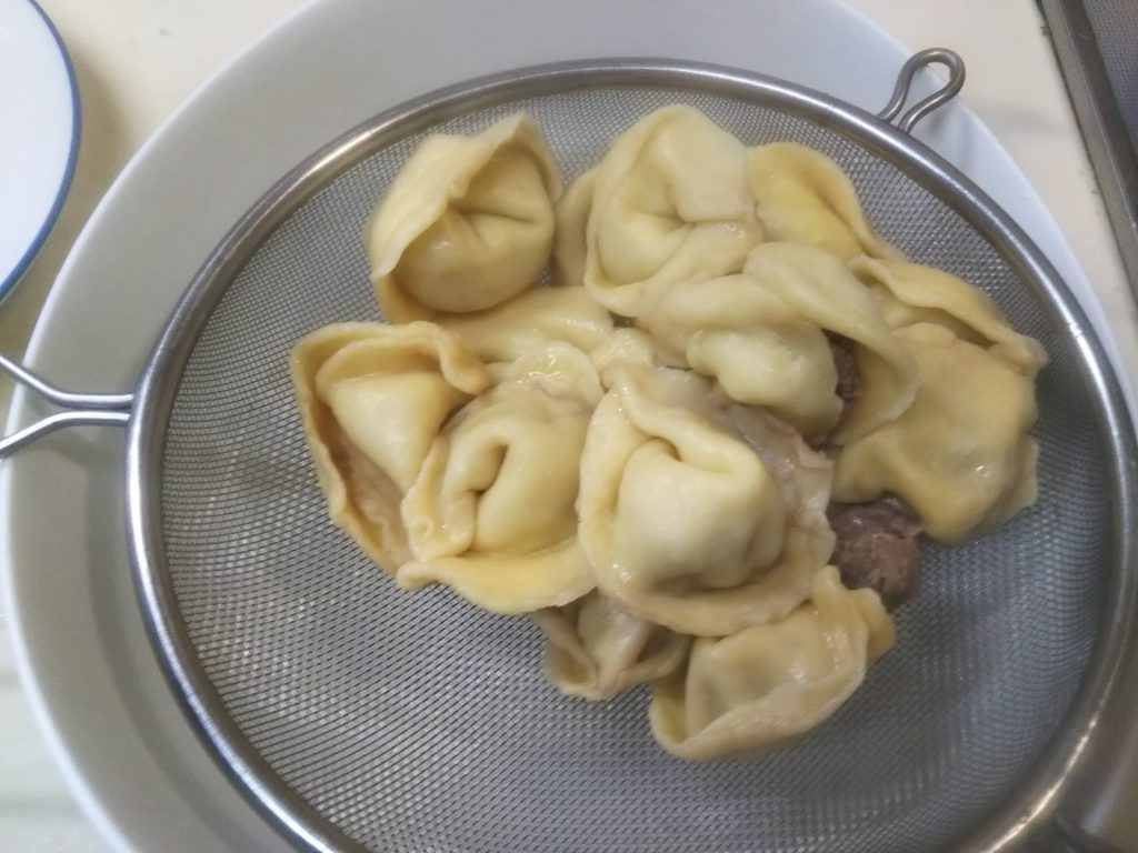 11. 茹で上ったペリメニは一旦網にのせ湯を切る