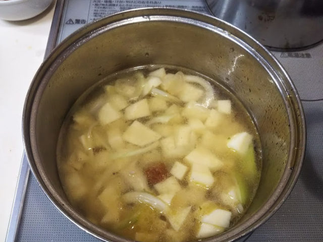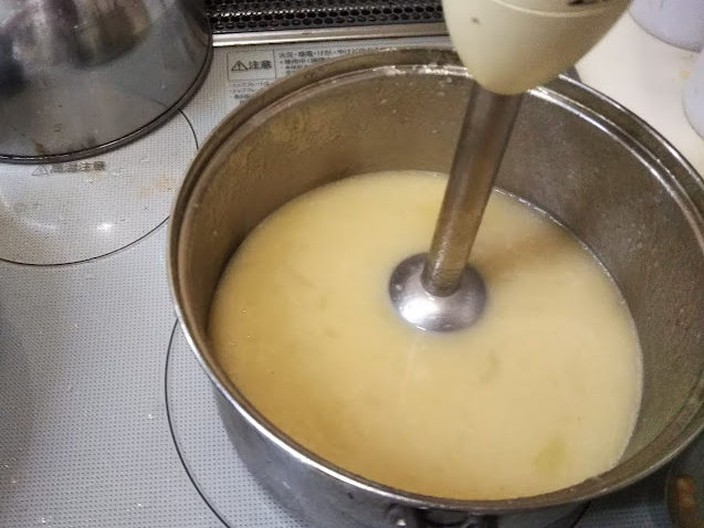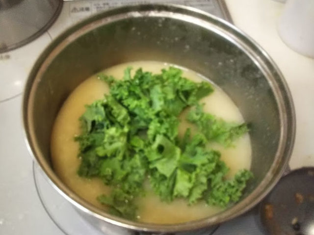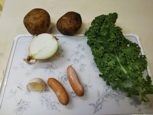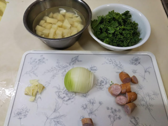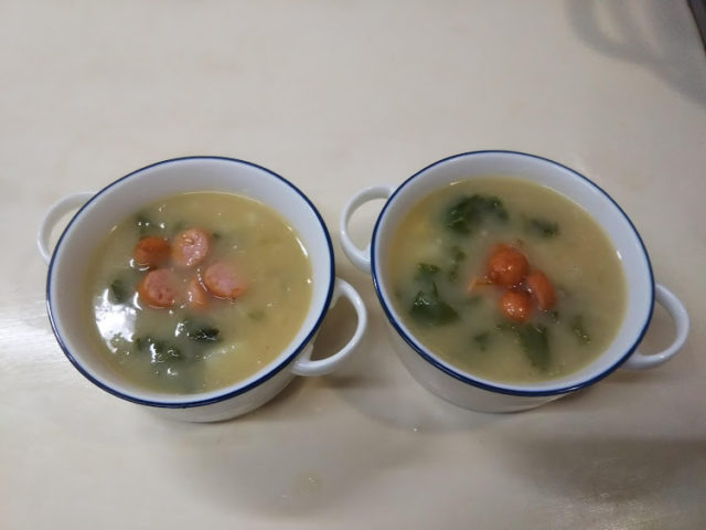 「緑のスープ」という意味のじゃがいものスープです。煮えたじゃがいもを潰してスープに乳化させて作るゾッパ・デ・レグーメスの別ヴァージョンです。ケールを入れて作りましたが、ほうれん草や小松菜などでも美味しく作れると思います。辛みのあるドライソーセージを使用するらしいのですが、粗挽きソーセージしかなかったので、それにチリパウダーを追加しました。レシピは丹田いづみ著『家庭で作れるポルトガル料理』(河出書房新社)を参考にさせていただきました。