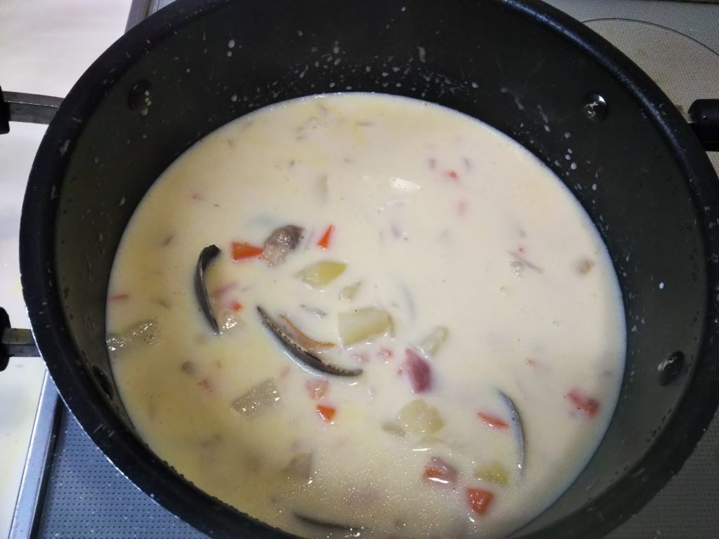 今回はニューイングランド風クラムチャウダーを作ってみました。意外にもクラムチャウダーを作ったのは生まれて初めてなのです。スパゲッティのボンゴレにも言えることですが、アサリやシジミのような二枚貝は、砂抜きするのが面倒な気がして手を出しずらいのです。でも味噌汁には入れているんだから出来ないことはないわけですね。美味しかったので、面倒臭がらずにまた作ります。