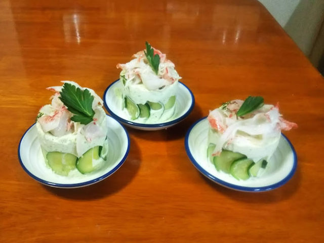 ビストロ・パ・マルのレシピから見た目が楽しい蟹とズッキーニのお菓子仕立てを作ってみました。レシピは『ビストロ・パ・マルのレシピ帖』から。ただ…本来は本物も蟹を使うのですが…我が家はカニカマで作りました、