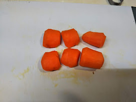 1.人参は皮を剥き、縦に2~3㎝位の長さに切り、必要に応じて2等分または4等分する。